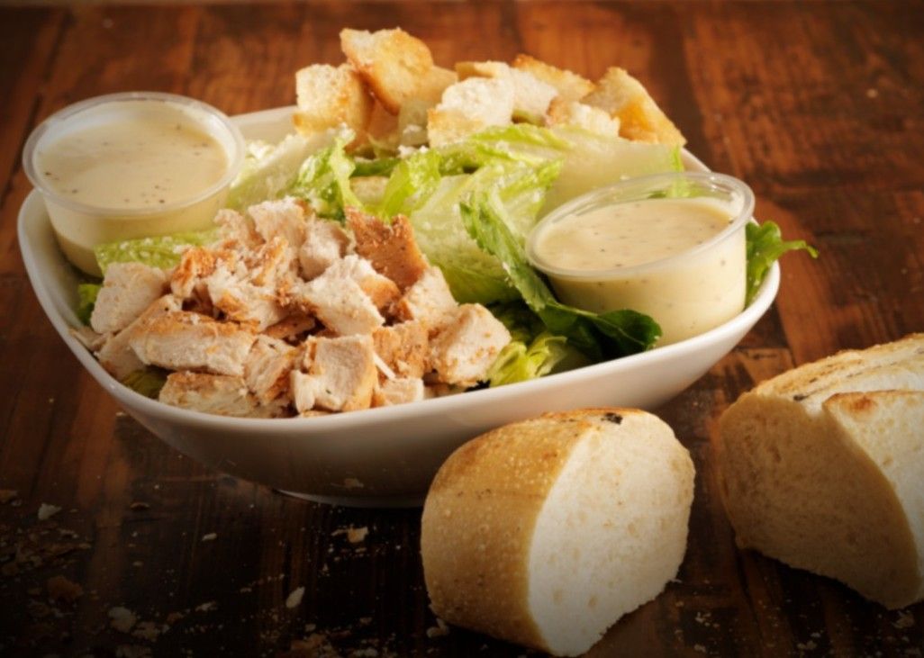 Romaine lettuce, grilled chicken, handmade sourdough croutons, parmesan cheese. Served with caesar dressing.
